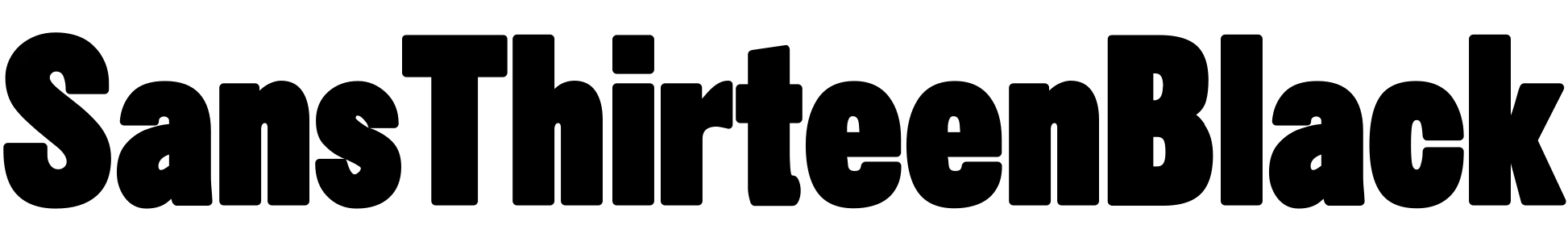 The design of SansThirteenBlack is characterized by its solid, heavyweight nature, which makes it an ideal choice for headlines, titles, and any application where a strong visual impact is required. The font's numerals, letters, and symbols are crafted with a focus on readability and simplicity, making it highly versatile for various design projects. The 'Black' in its name suggests the font's dense and robust weight, which provides a commanding presence on the page or screen.