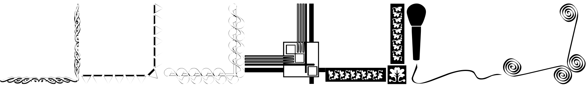 As an imaginative exploration, the font named "Border Corners" seems to evoke the essence of creativity and structural elegance. It's not a traditional font in the sense of letters and numbers, but rather an artistic tool designed for accentuating and embellishing textual presentations. This font comprises a collection of decorative corner designs intended to frame or highlight content, whether it's for formal documents, creative projects, or digital compositions.