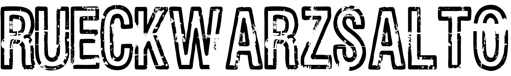 The craftsmanship behind Rueckwarzsalto reflects Bumbayo Font Fabrik's commitment to creating fonts that are not only visually captivating but also imbued with character and depth. With each glyph, the font invites designers to explore new possibilities and push boundaries, encouraging a departure from the mundane. Rueckwarzsalto is more than just a typeface—it's an invitation to adventure in the realm of design, reminding us that artistry in typography can enliven and enrich our visual landscapes.