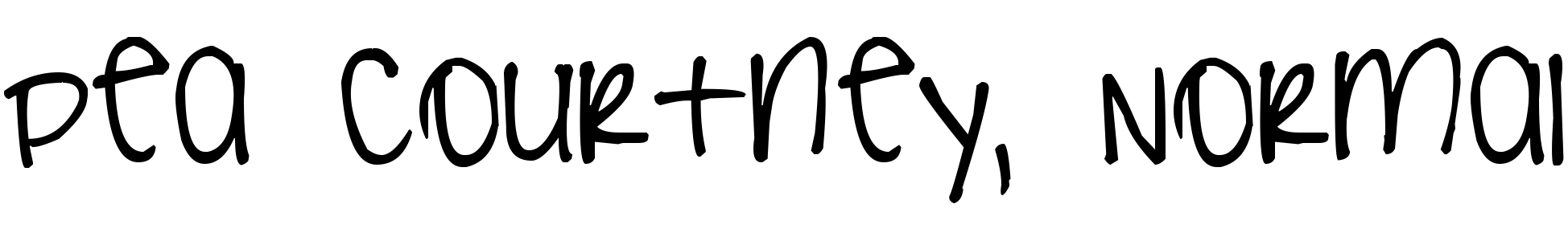 Typeface © (Fonts For Peas). 2006. All Rights Reserved http://www.geocities.com/fontsforpeas Free for personal use, contact for commercial use: fontsforpeas@yahoo.com. Pea Courtney:Version 1.00. Pea Courtney. Version 1.00 May 11, 2006, initial release. PeaCourtney. This font was created using Font Creator 5.0 from High-Logic.com. http://kevinandamanda.com/scrapbook/fonts/fontsforpeas/