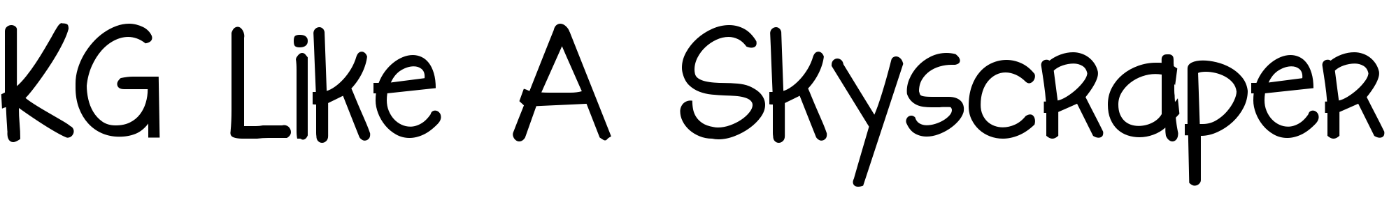 The font's legibility is remarkable, with clear distinctions between characters that make it easy to read at both large and small sizes. This makes KG Like A Skyscraper a versatile choice for designers, capable of handling everything from headers and logos to body text with ease. Its uniqueness lies not just in its concept but in its execution, offering a blend of playfulness and professionalism that can breathe life into a design without overwhelming it. Whether used in educational materials, on websites, or in creative projects, KG Like A Skyscraper stands tall as a testament to the power of inspired font design, inviting audiences to look up and admire the view.