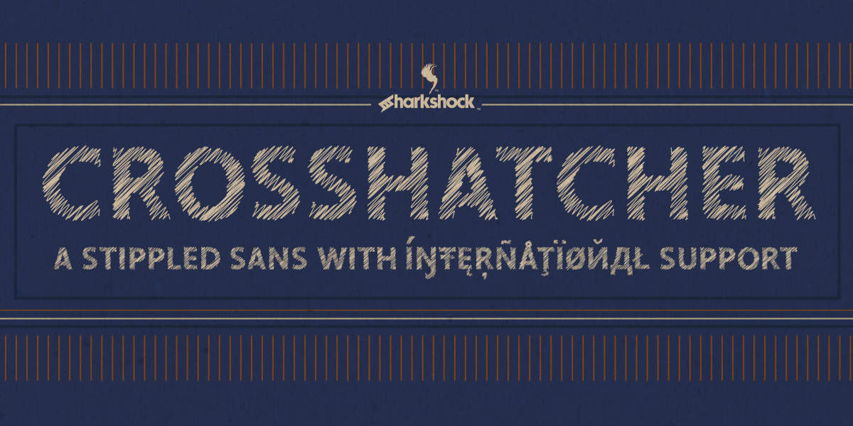 The Crosshatcher font is a stippled sans typeface characterized by its textured, decorative appearance. This effect makes the font look like it was drawn using a quick, handwritten or sketched technique. The typeface is presented in an initial-caps style, meaning all characters are uppercase.