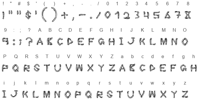 Each character in the Wood Sticks font maintains a unique personality, much like the trees in a forest; no two are exactly alike. Despite their differences, the letters flow together harmoniously, creating a sense of cohesion and organic unity. The font strikes a perfect balance between irregularity and readability, ensuring that it's not only captivating to look at but also perfectly functional for various design purposes. It's easy to imagine it being used in contexts like storybooks, themed signage, environmental campaigns, or any project aiming to evoke a sense of nature, adventure, and warmth.