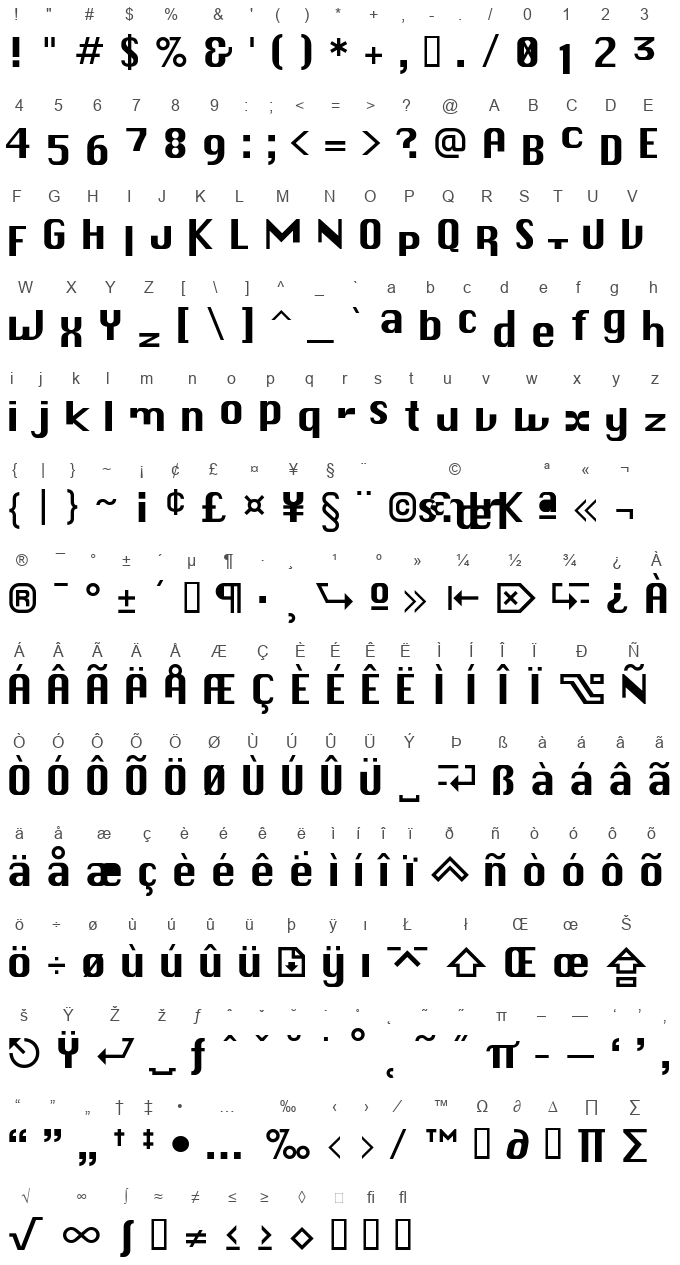 ! " # $ % & ' ( ) * + , - . / 0 1 2 3 4 5 6 7 8 9 : ; < = > ? @ A B C D E F G H I J K L M N O P Q R S T U V W X Y Z [ \ ] ^ _ ` a b c d e f g h i j k l m n o p q r s t u v w x y z { | } ~ ¡ ¢ £ ¤ ¥ § ¨ © ª « ¬ ® ¯ ° ± ´ µ ¶ · ¸ ¹ º » ¼ ½ ¾ ¿ À Á Â Ã Ä Å Æ Ç È É Ê Ë Ì Í Î Ï Ð Ñ Ò Ó Ô Õ Ö Ø Ù Ú Û Ü Ý Þ ß à á â ã ä å æ ç è é ê ë ì í î ï ð ñ ò ó ô õ ö ÷ ø ù ú û ü þ ÿ ı Ł ł Œ œ Š š Ÿ Ž ž ƒ ˆ ˇ ˘ ˙ ˚ ˛ ˜ ˝ π – — ‘ ’ ‚ “ ” „ † ‡ • … ‰ ‹ › ⁄ ™ Ω ∂ ∆ ∏ ∑ √ ∞ ∫ ≈ ≠ ≤ ≥ ◊ fi fl