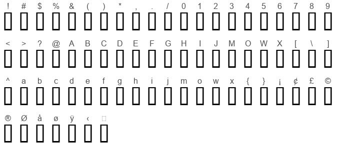 ! # $ % & ( ) * , . / 0 1 2 3 4 5 6 7 8 9 < > ? @ A B C D E F G H I J M O W X [ \ ] ^ a b c d e f g h i j m o w x { } ¡ ¢ £ © ® Ø å ø ÿ ‹