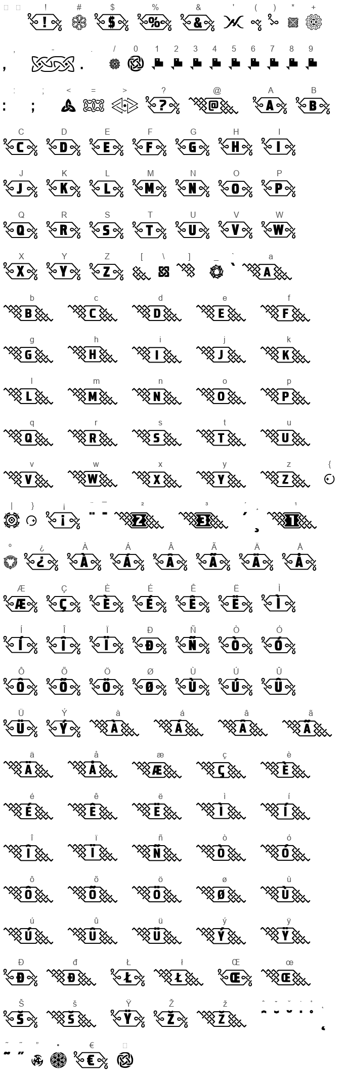 TIES is a display historic banner-style typeface with a tribal style. The result is an intertwined and decorative alphabet that combines strength and elegance. It originated as a banner-style font, where each character is integrated into a frame intertwined with the next by knots.