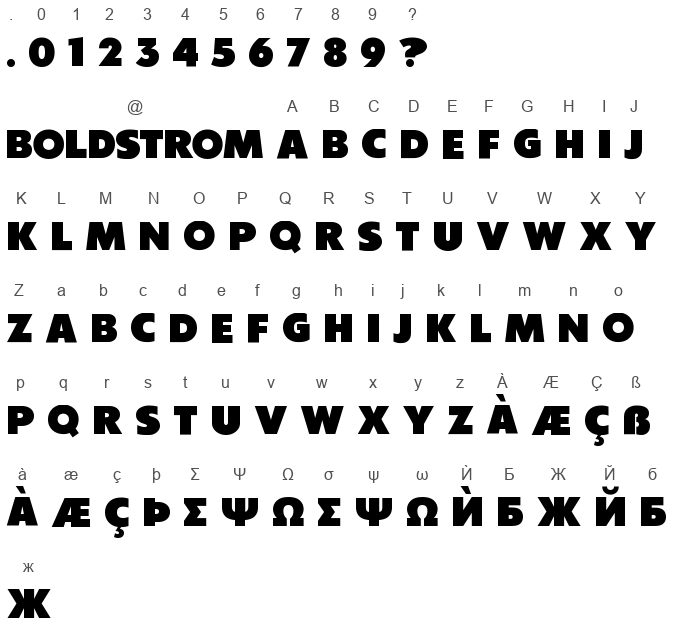 The Boldstrom font is an extremely heavy and dominating display typeface. The characters are completely rounded at the corners and the ends of the strokes, giving it a soft, yet incredibly bold appearance. It is an initial-caps font, with all letters presented in a uniform uppercase. The font also has a distinct retro aesthetic, reminiscent of designs from the 1960s or 1970s. Its overall visual impact is substantial and commanding, making it suitable for headlines or logos.