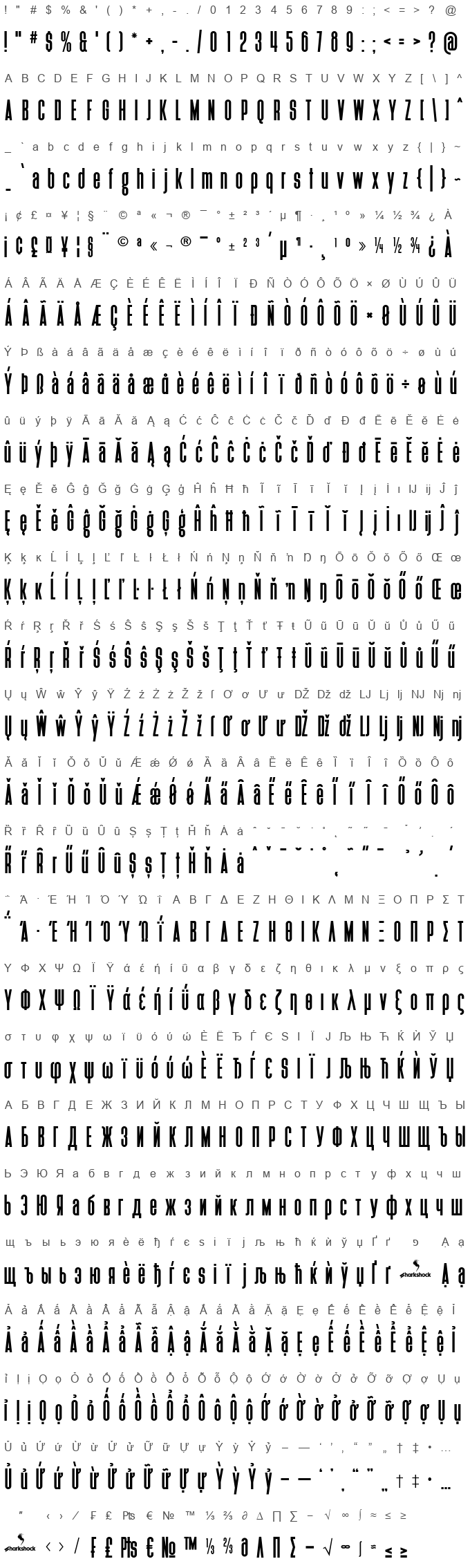 This relative of Deutschlander is about 20% taller and designed to take up more vertical space. Unlike most of our display fonts this one is designed to fill body text or accompany titles. Included are basic/extended latin Greek, Cyrillic, and many other European accents and diacritics. OTF features include ordinals, small caps, stylistic sets, ligatures, and alternates. Squeeze lots of text into your next project such as faux movie posters, labeling, or subtitles. A demo of the regular version is included for personal use. Full version plus Italic can be purchased for $15 or by purchasing a commercial license. Please note the $15 purchase is for personal use only. Licensing info can be found by visiting this page: